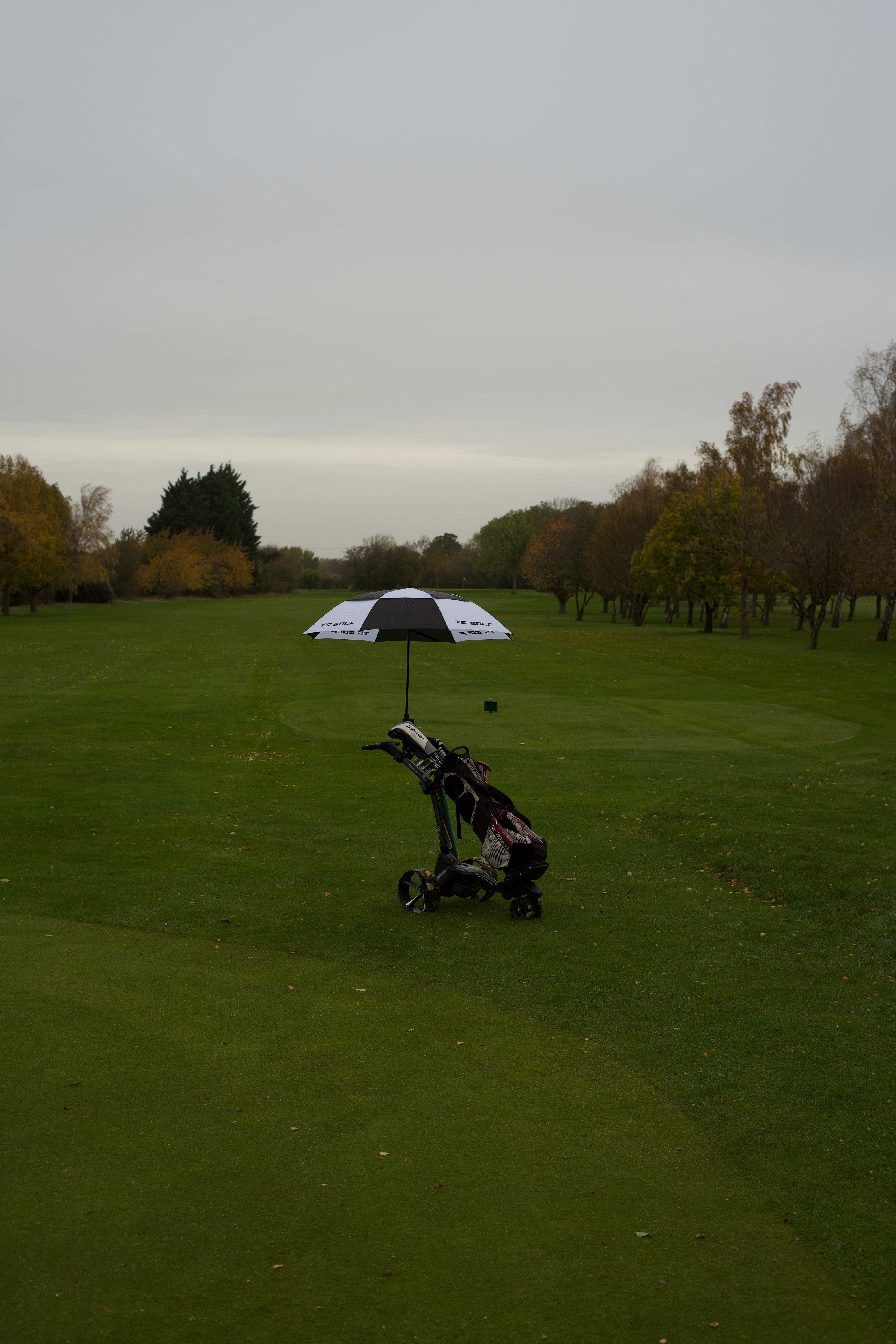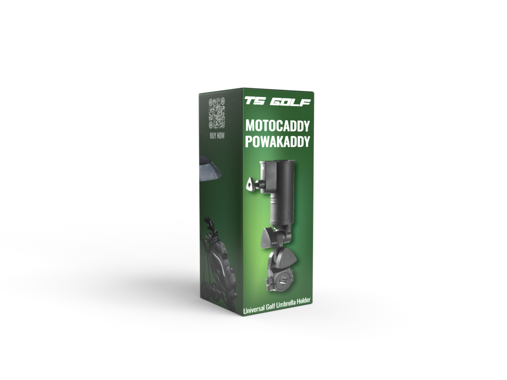 It fits directly onto Motocaddy's accessory station or any round-cylinder frame. The holder is durable, designed to withstand strong winds and rain, and can be easily folded for storage and transport. The umbrella securely slots in and stays in place with upgraded screws to keep you and your clubs dry.