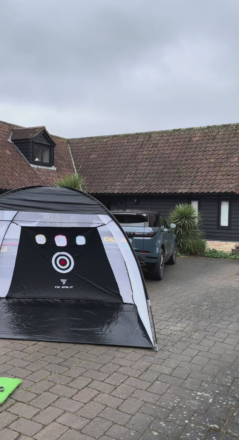 The practice net features 1 large target and 3 chipping target pockets to practice your skills like Practice, Swing and Chipping, etc. An outstanding way to practice every club in your golf bag easily at home / outdoors, saving money and time. Come with 10 x 7 x 6 ft (W*H*D)Golf Hitting Net,3 x golf tees,5 x golf balls, 1 x golf hitting mat, and a carry bag and a chipping net depending on what variation is chosen.